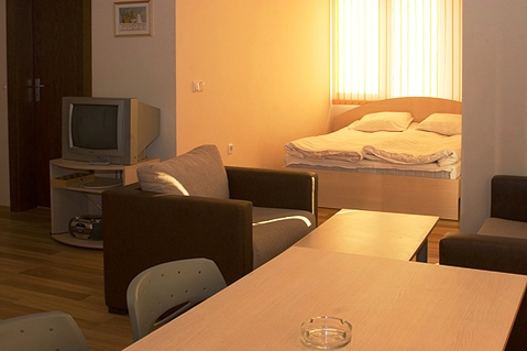 В ОТЕЛЕ: • 2 корпуса • 4 этажа • 9 апартаментов с 1-ой спальней (макс. 2+2 чел., 45 m²)